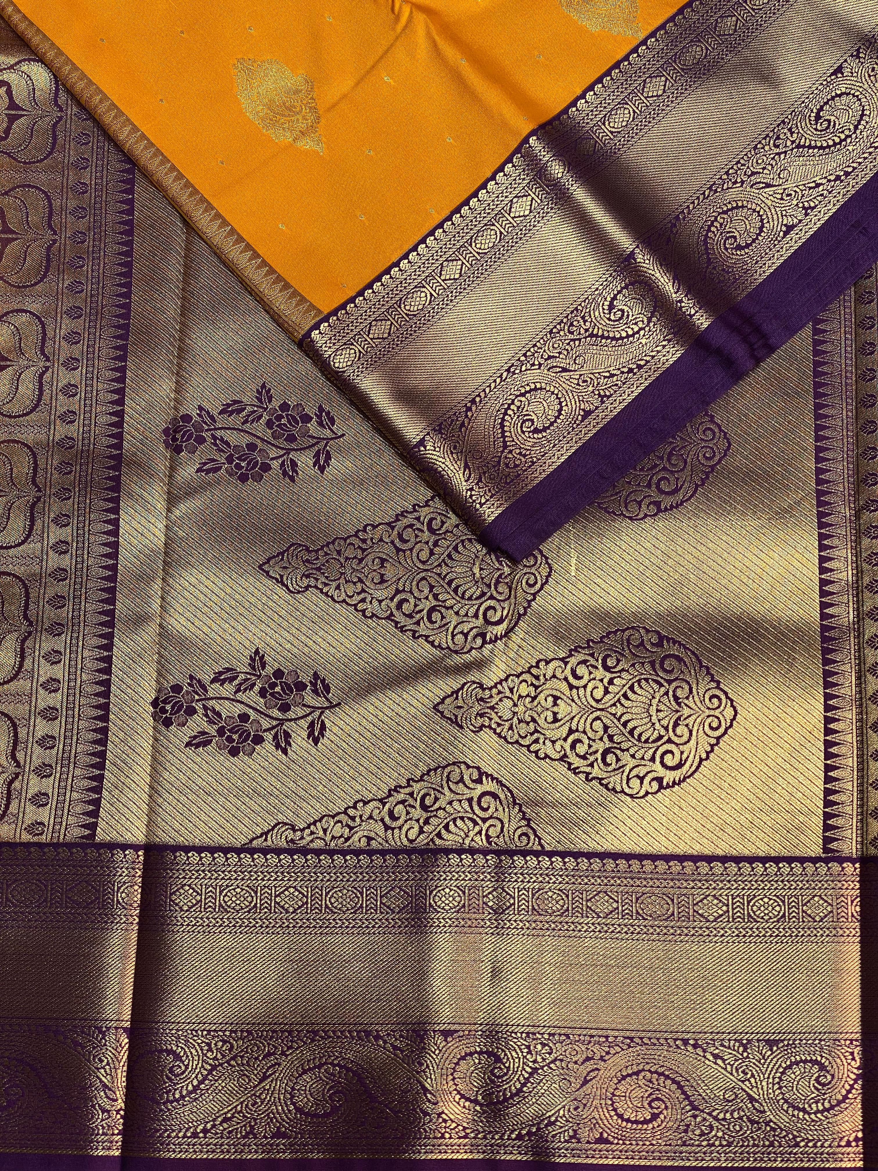 Yellow and Deep Purple kanchipuram silk saree- PSSR202
