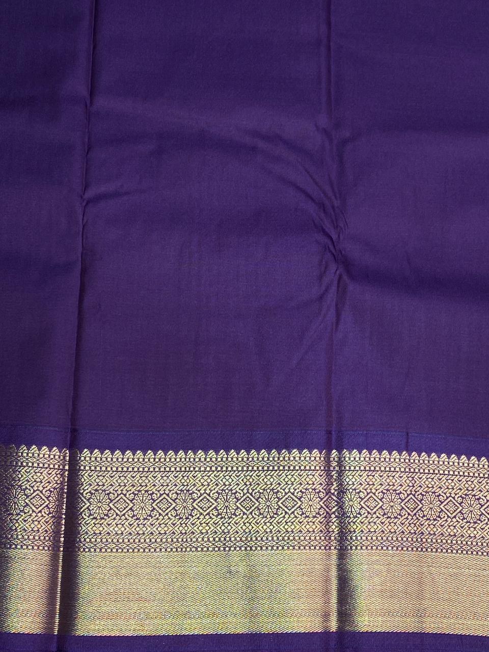 Red and violet semi Kanchipuram soft silk saree featuring an all-over 1000 buttas pattern. The traditional border enhances its classic charm, making it a timeless and elegant drape for any special occasion