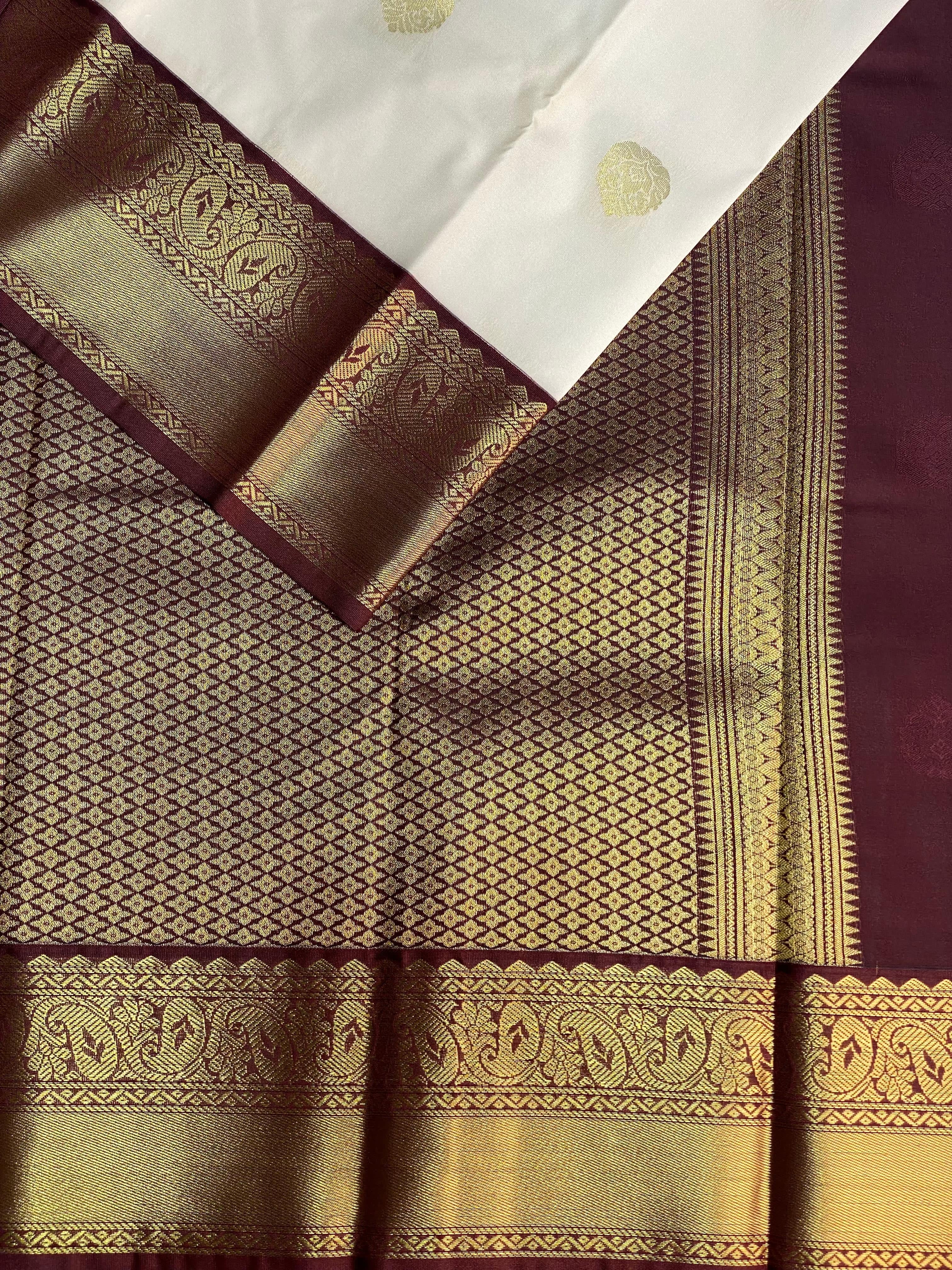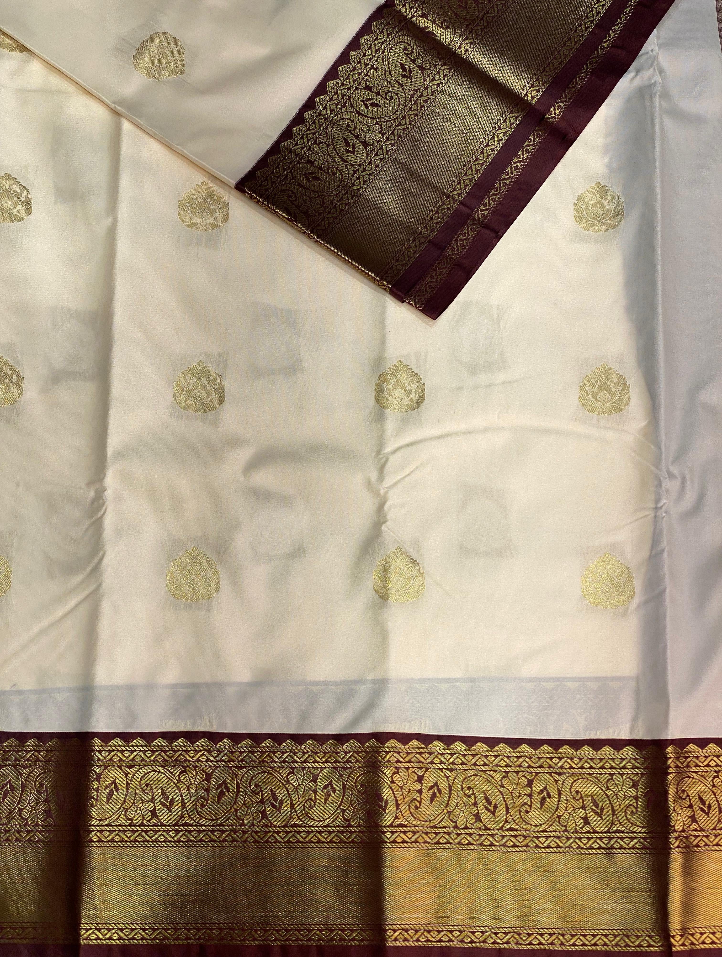 Off white and Purple kanchipuram silk saree- PSSR199