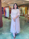 Soft mul chanderi salwar set with small yoke gathers and handwork. Paired with a Banarasi tissue strip dupatta featuring scalloped edges and a matching bottom - perfect for a stylish function look.