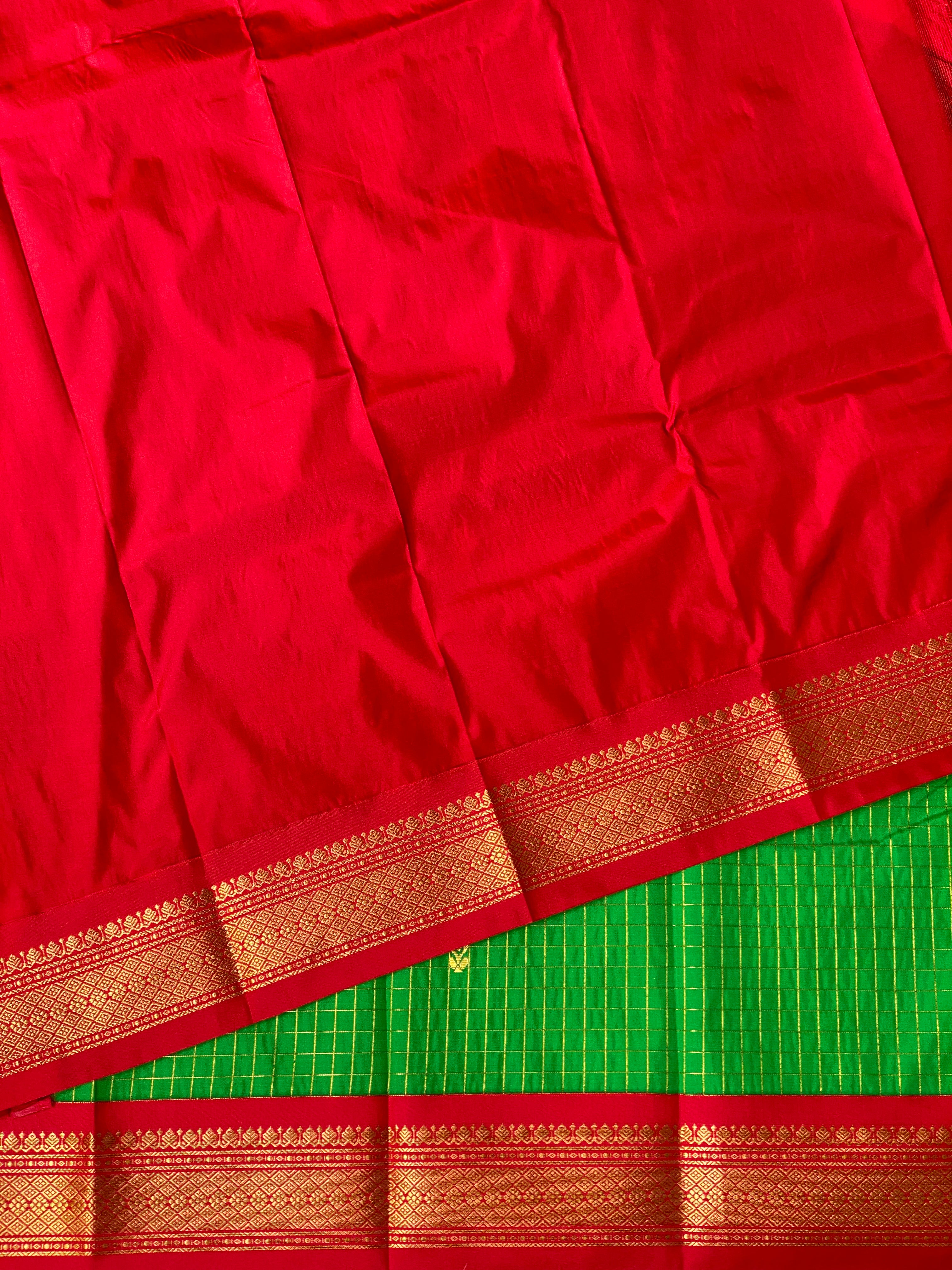 Parrot green and Red Traditional Kanchi silk - PKANCHIPARROT