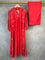 This red Chanderi kurta set, crafted from lightweight fabric, features delicate golden embroidery and a flared silhouette, paired with a matching plain bottom-perfect for festive occasions.