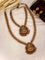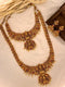Antique kasu haram with Goddess Lakshmi pendant, highlighted with red and green detailing, paired with matching earrings — a perfect bridal and festive pick.