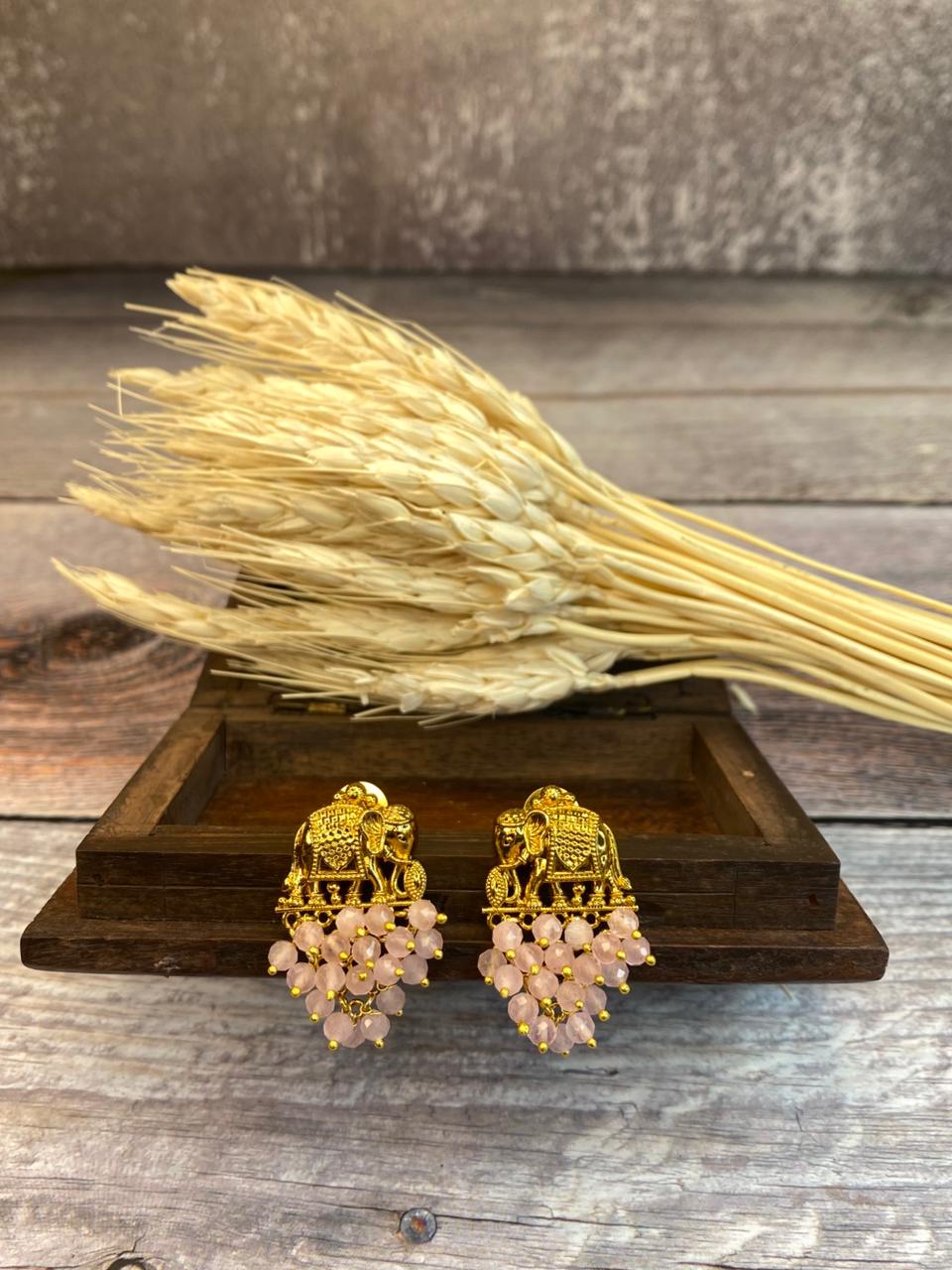 A beautiful antique-finish premium stud crafted with intricate detailing, exuding timeless elegance. The design is enhanced with delicate bead hangings that add gentle movement and charm. A perfect traditional accessory to elevate any ethnic look.