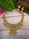 A timeless pearl cluster necklace featuring cascading rows of tiny pearls, beautifully woven together for a rich and regal look. The centerpiece showcases a floral motif with red and green enamel accents, highlighted by a delicate pearl tassel drop. Paired with matching statement earrings, this set exudes elegance and is perfect for weddings, festive occasions, and traditional celebrations.