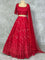 Red chikankari lehenga set features intricate embroidery on the blouse and skirt, paired with a soft net dupatta for a graceful finish—perfect for festive or wedding occasions.