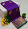 Semi Kanchipuram soft silk saree with traditional border. The main body of the saree is a Vioet color, adorned with small golden motifs and Green contrasting highlight border and pallu.