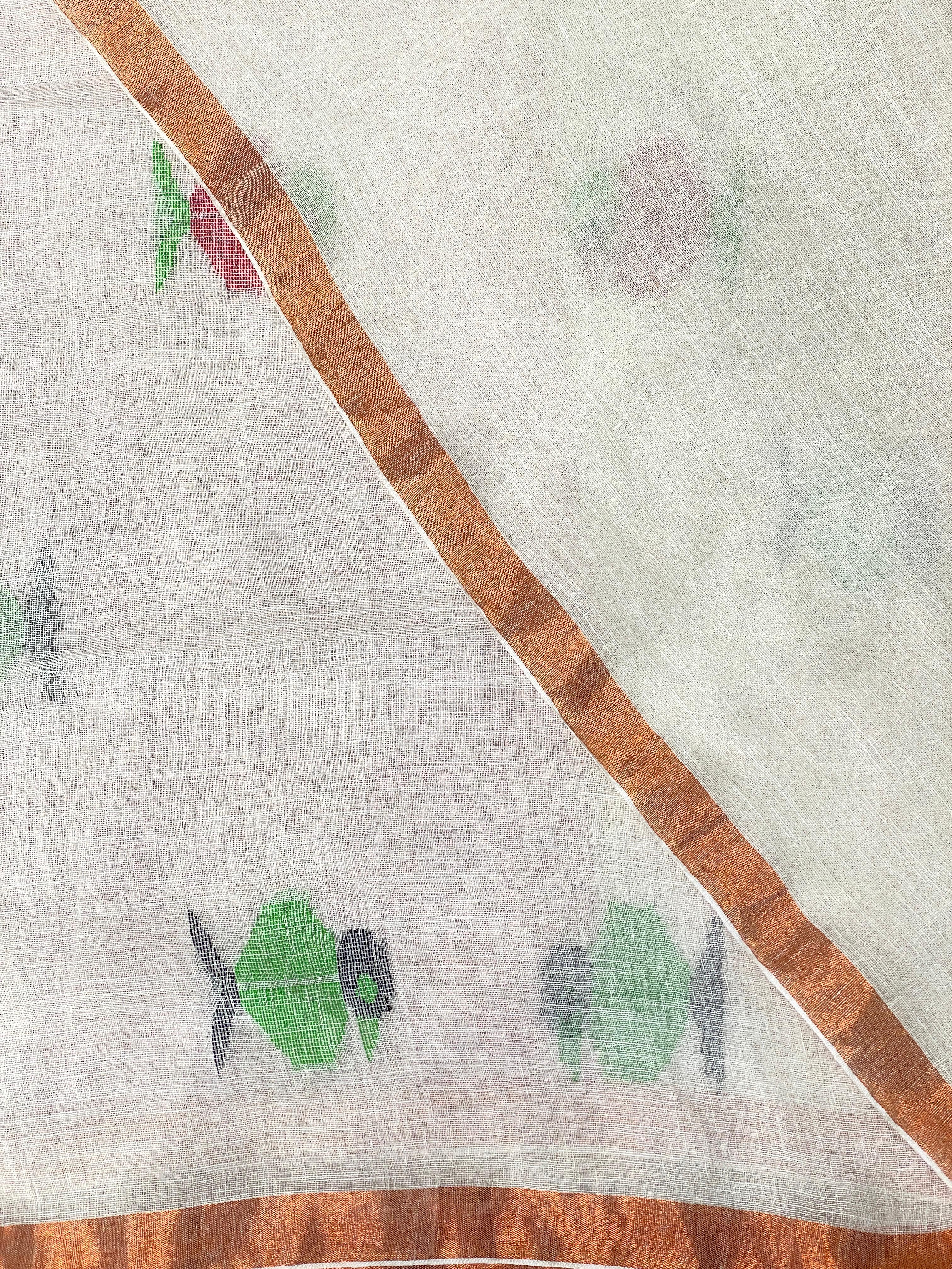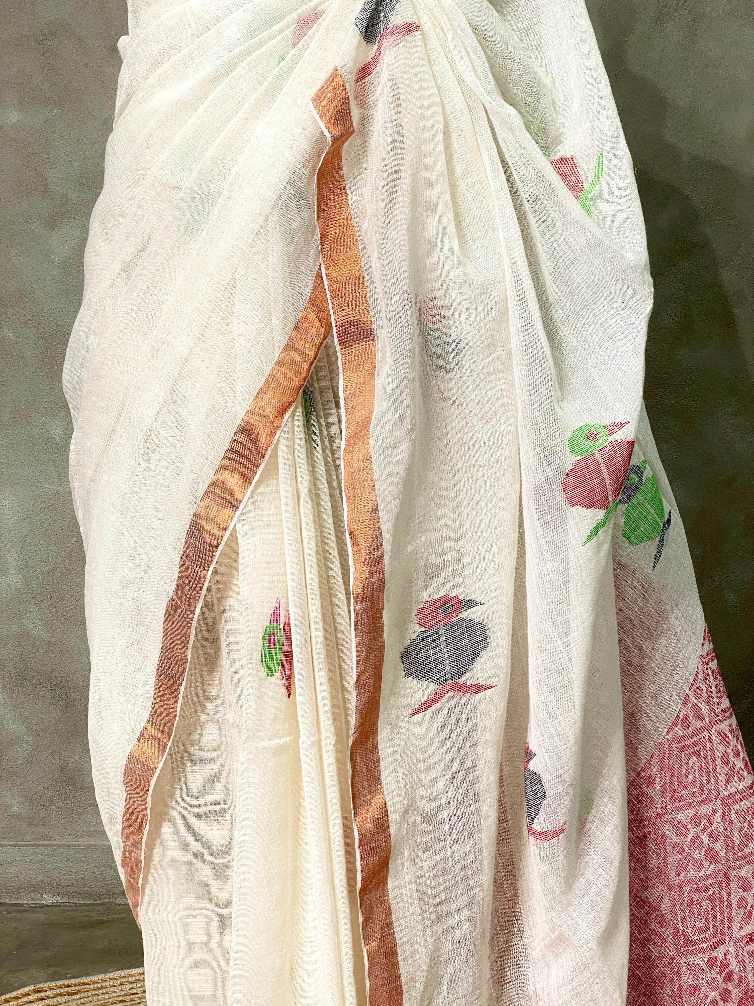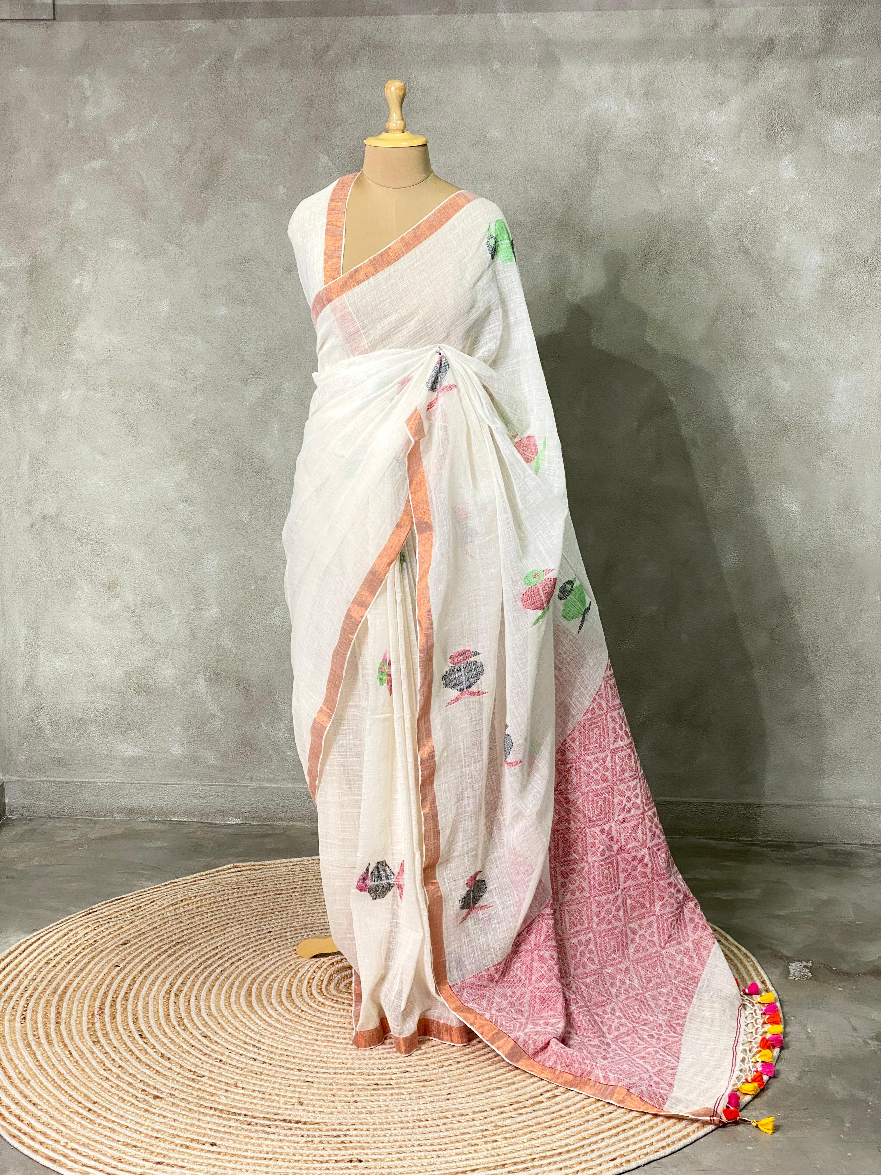 Handloom linen saree with beautiful woven pattern , crafted in a breathable and comfortable fabric — perfect for effortless elegance.