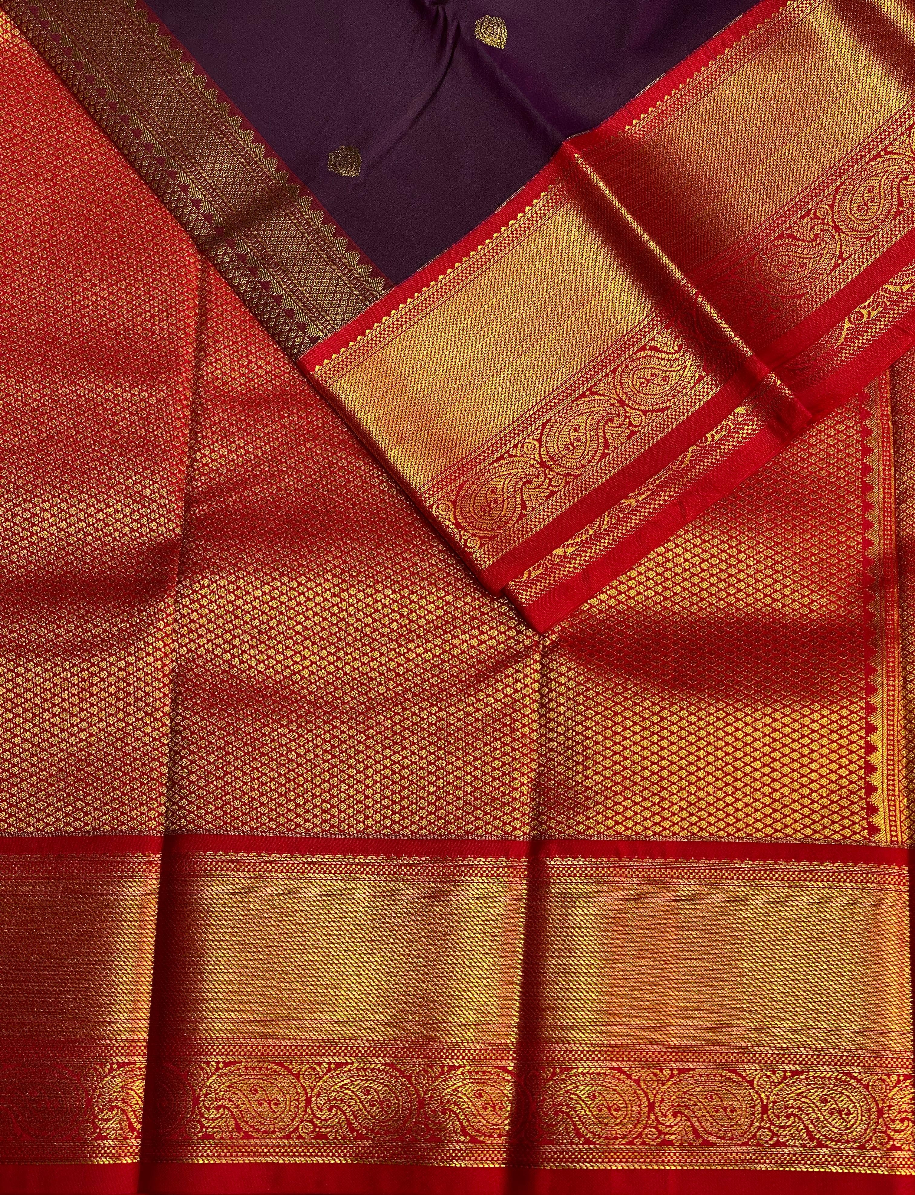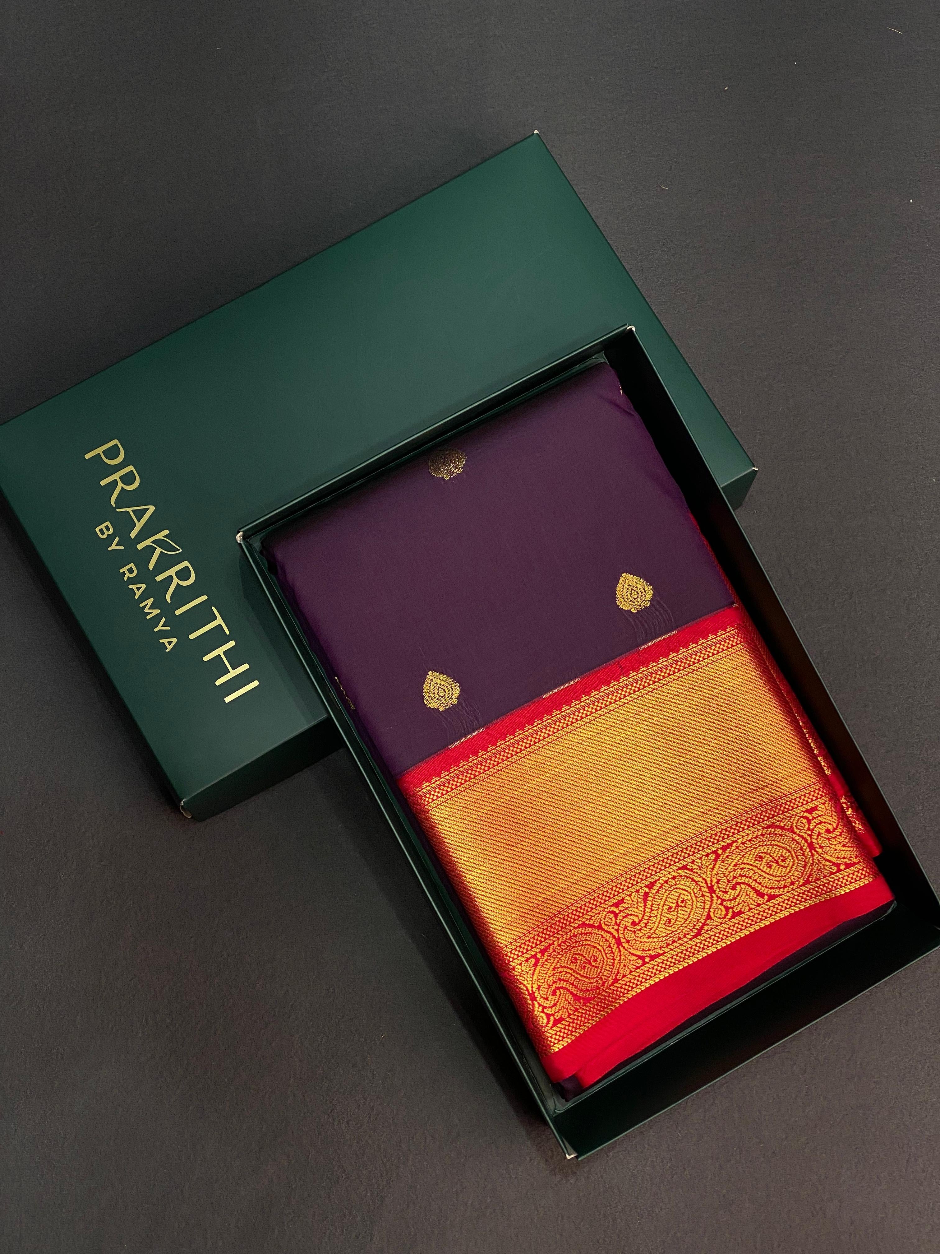 Deep Purple and Red kanchipuram silk saree- PSSR205