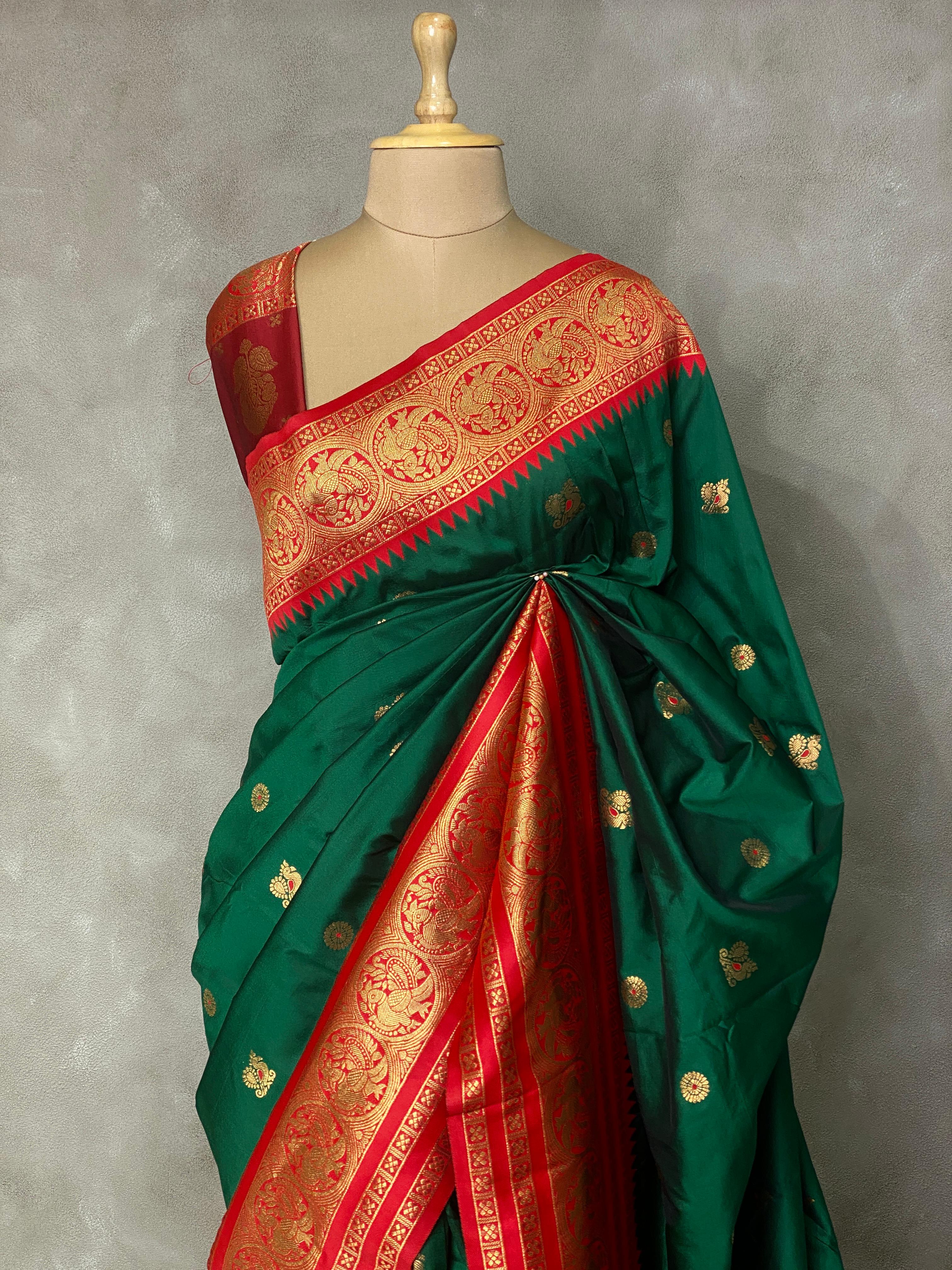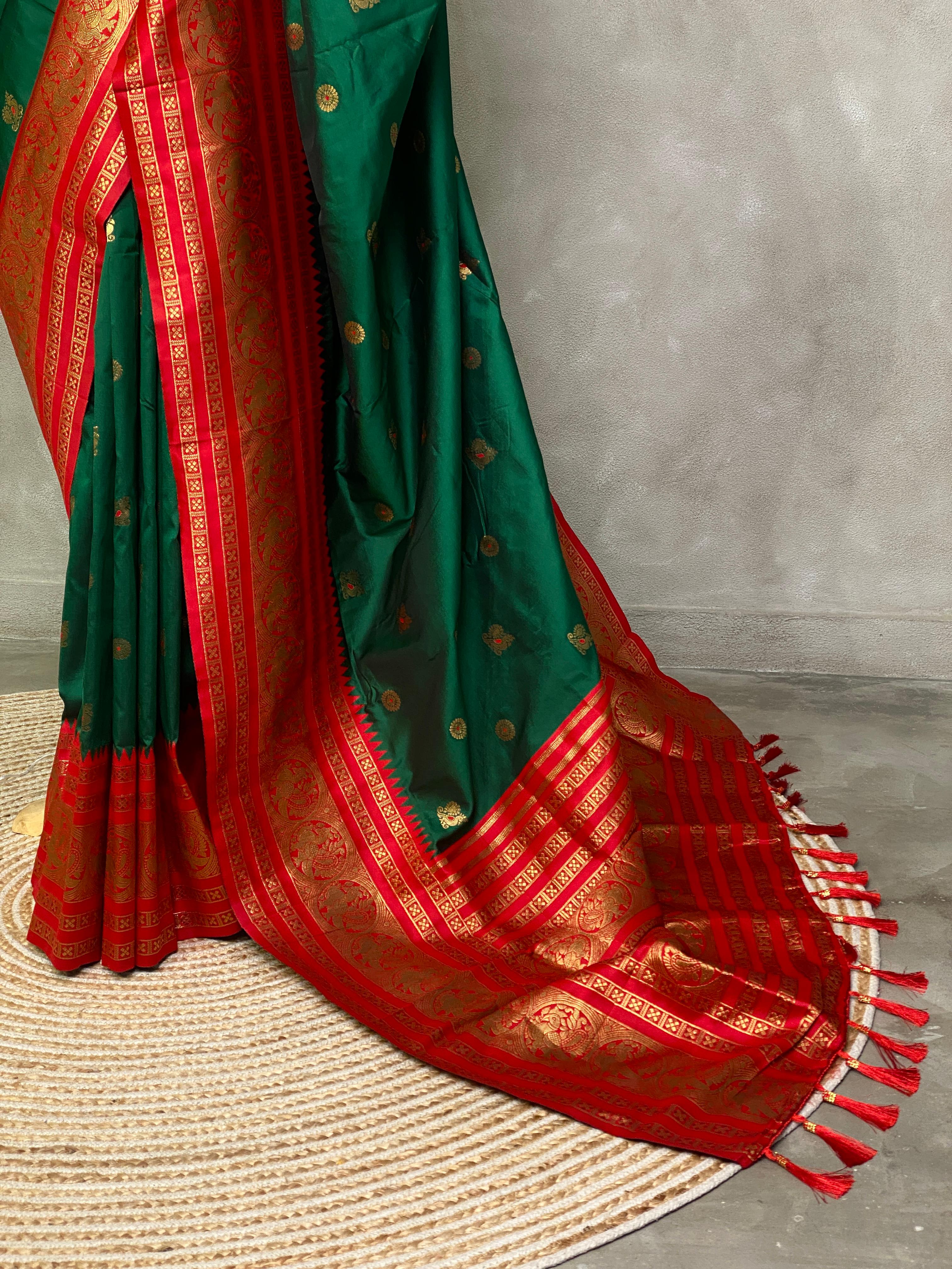 Bottle green and red saree-PSSGREEN
