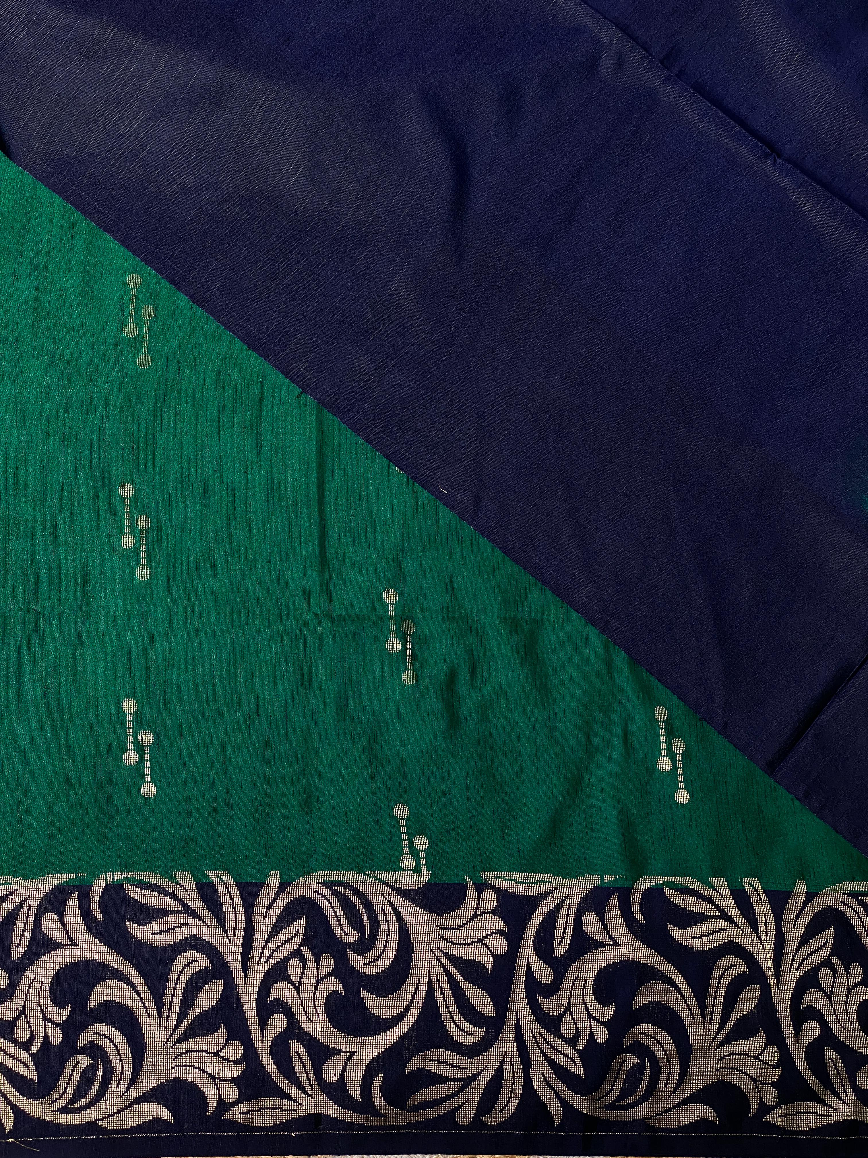 Peacock green and Navy blue soft silk saree - PSS0771DD