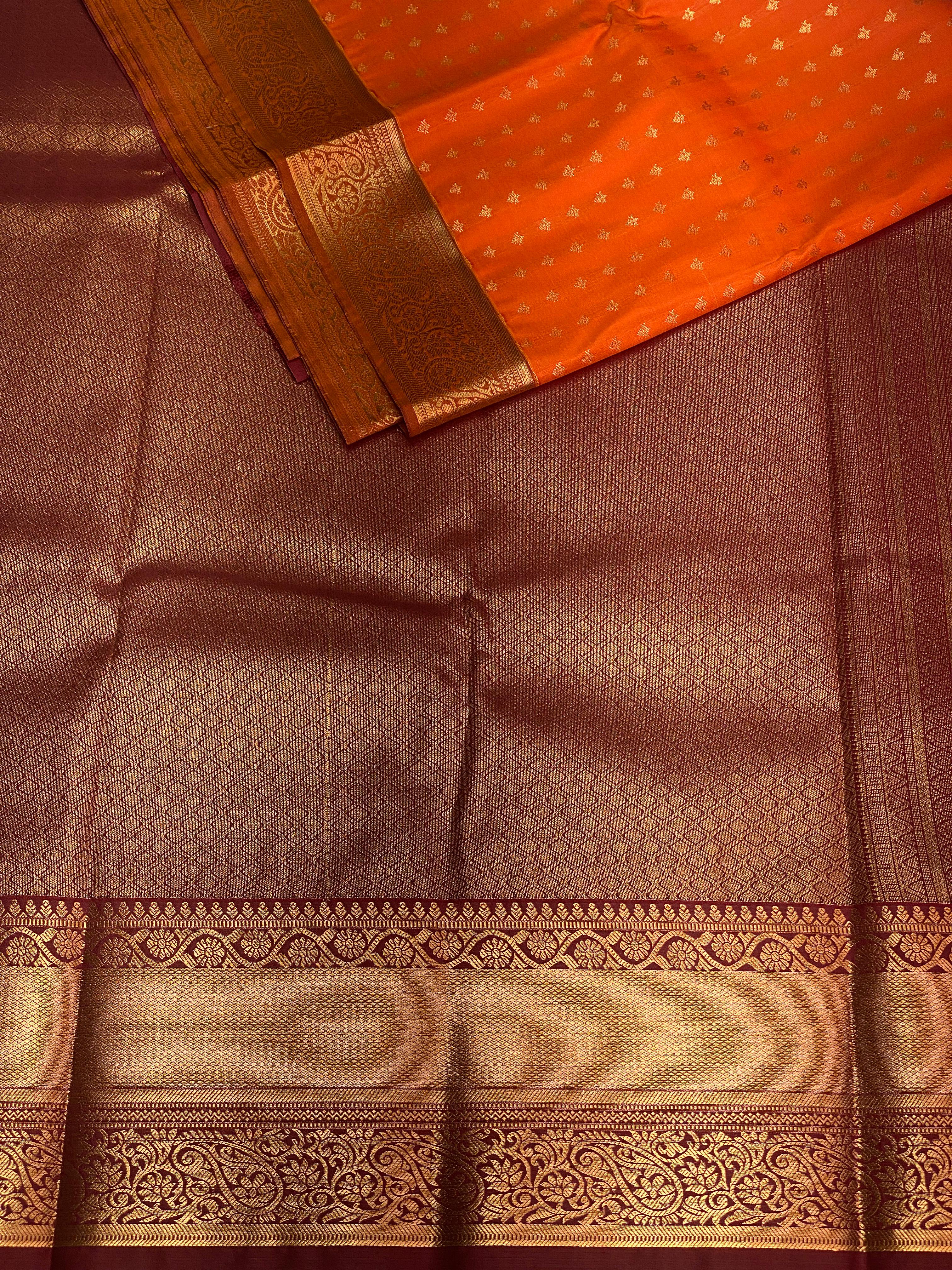 Orange and Brown silk saree- SS1018