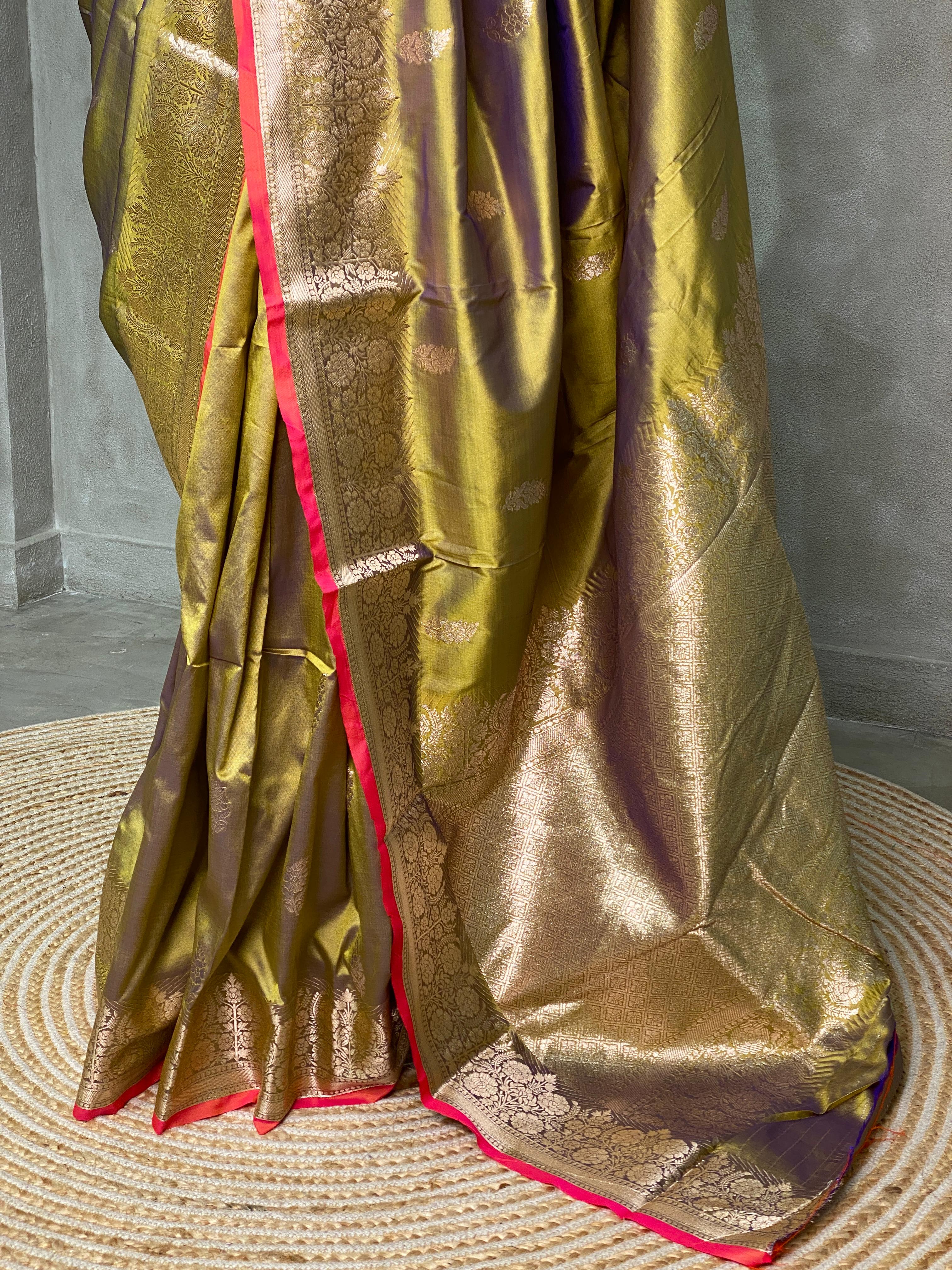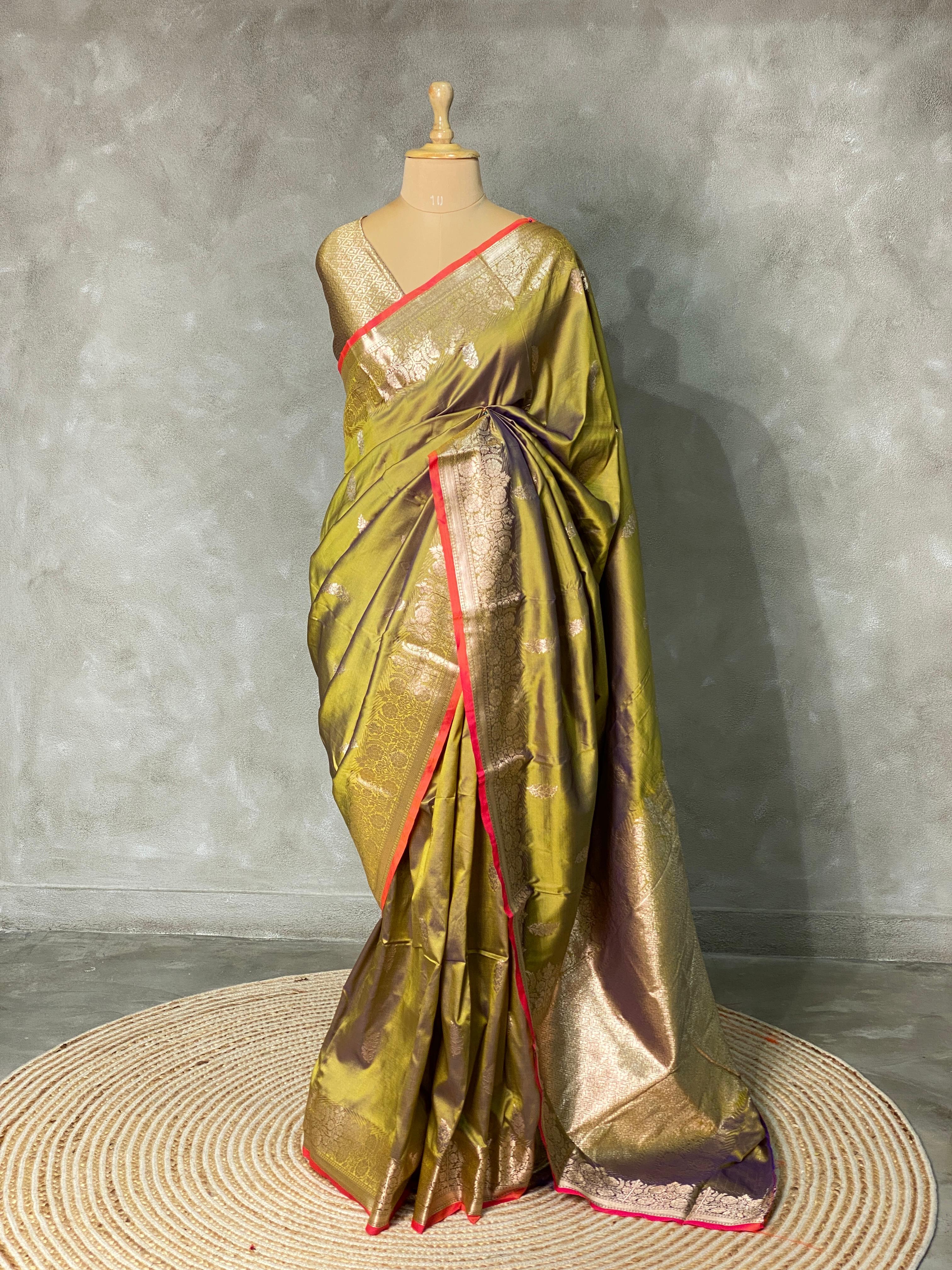 Olive green Banarasi Saree - PBAN03Olive green Banarasi Saree - PBAN03