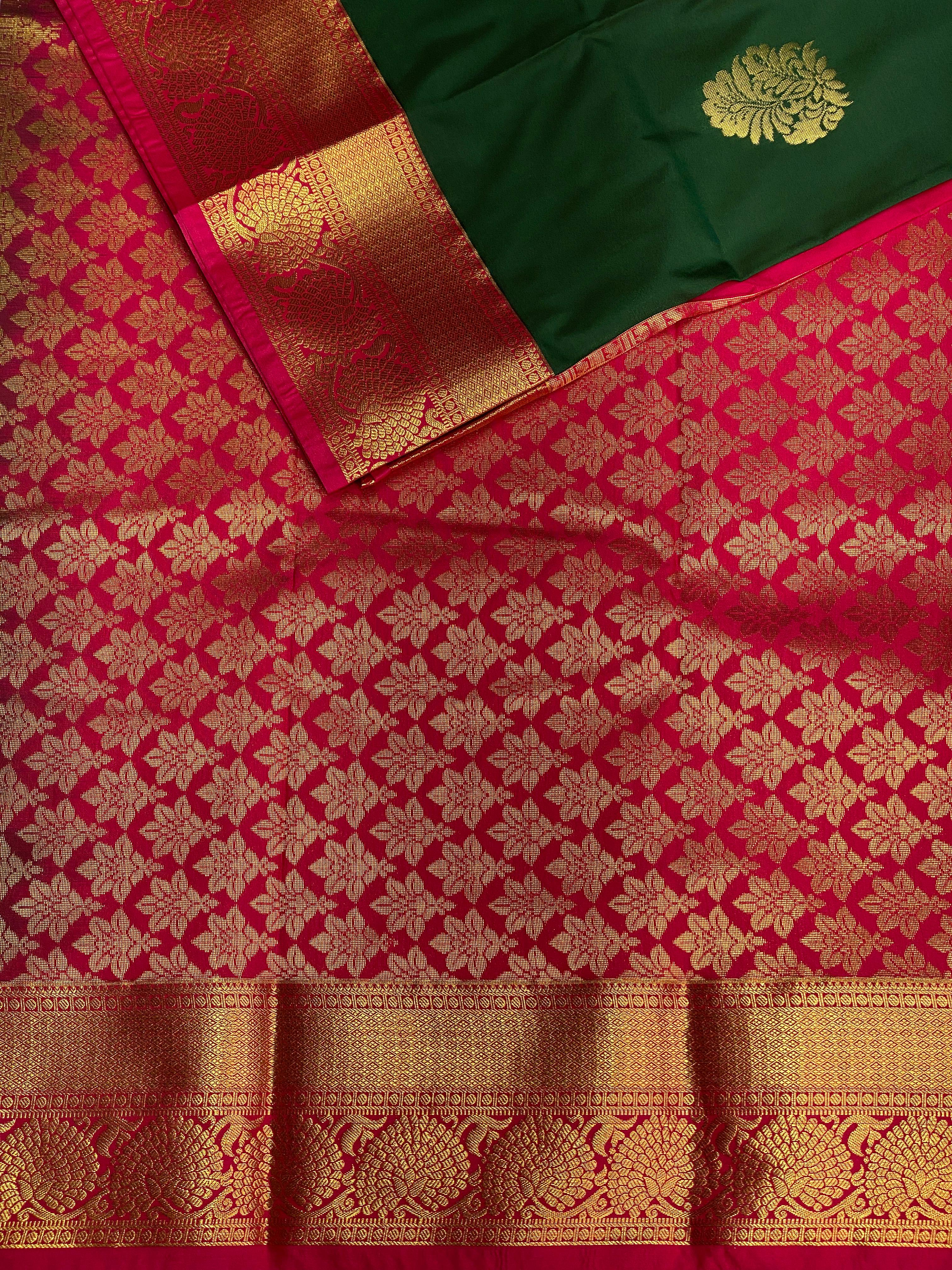 Green and magenta Kanchipuram Silk saree - PPSILKA